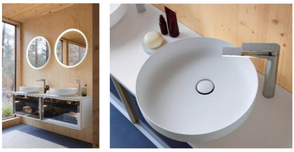 左:Duravit首次推出由 DuroCast UltraResist 矿物铸造材料制成的脸盆