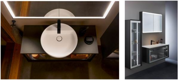 Vitrium系列浴室家具采用经PEFC质量认证的木材制成,白色和哑光炭黑色金属框架则为整体注入温暖气息与雅致格调。可供选择的两种不同款型,为浴室空间带来双重灵感:采用PARSOL 玻璃的半透明背光面板款,在打造出明快的漂浮感之余,也为日常用品、化妆品等物件提供展示舞台;另一款型包含由木材和单色饰面(共八种色调)构成的面板,彰显出该系列的多元个性化设计。额外的内置抽屉,为小器具提供了细分存储区域;配套的半高柜和高柜进一步完善了家具系列。
