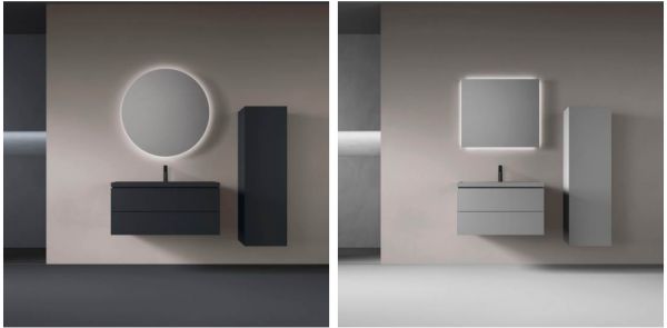 左:相同设计语言以及内置 LED 照明的圆形镜子