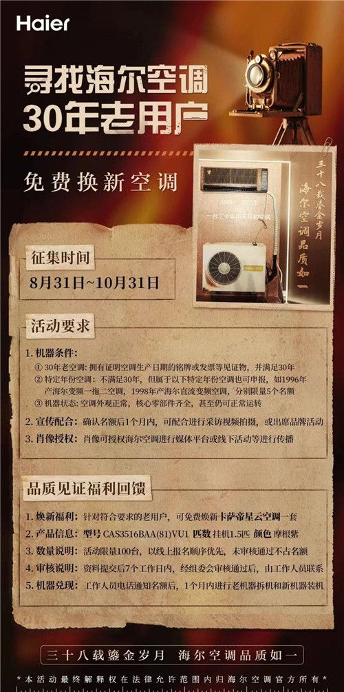 产品用得住!海尔空调开启寻找30年老用户活动