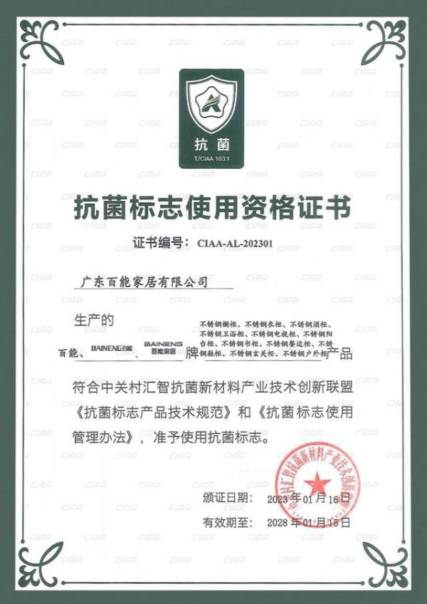 百能抗菌系列新品已获得CIAA抗菌标志使用授权,并在具有CMA和CNAS资质的第三方抗菌检测实验室取得检测报告,其卫生安全性能和抗菌性能满足严苛的CIAA技术标准,引领行业迈进不锈钢家居抗菌时代。