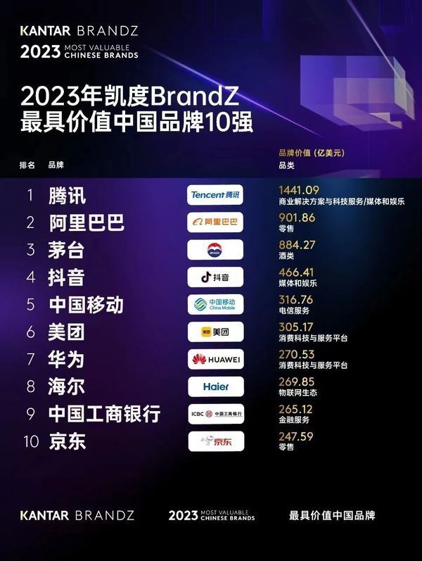 2023 BrandZ中国品牌百强公布:海尔位列第八,排名稳步提升