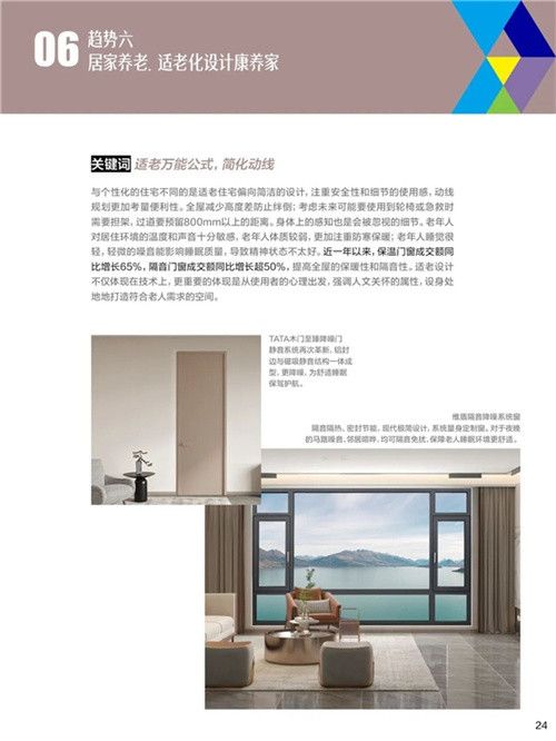 家庭空间是承接衰老的重要部分,适老产品则是辅助,在此次调研中,92.2%的受访者关注适老产品是因为家中有老人;78.27%的受访者则是提前为自己的老年生活布局。近一年来,京东适老马桶、安全扶手、坐式淋浴器搜索量同比增长80%,成交额同比增长超50%,对老人更有温度的指静脉智能锁成交额同比增长超300%。此外,老人对居住环境的感知受到重视,京东保温门窗成交额同比增长65%,隔音门窗成交额同比增长超50%。