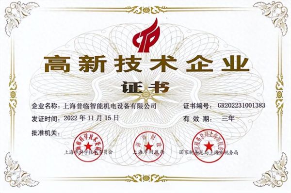 公司于2019年首次评定为上海市高新技术企业,并于2022年通过复评,再次评定为上海市高新技术企业,2020年评定为上海市松江区专精特新企业,2022年评定为上海市科技型中小企业,推荐为上海市松江区重点发展企业。