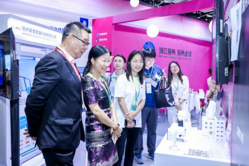 在技术与内容服务板块,气味王国带来了数字气味调香技术,用户可以自由在软件上选择不同的气味及拖动任意比例,去调制属于自己的专属气味,还带来了美丽浙江有味道,不仅可以感受浙江各个地市的美景、美食,还能闻到对应的味道;瑞德设计以“设计为一”为使命,荣获德国红点奖、德国 iF 设计奖、美国 IDEA 等百余项权威设计大奖,本次展示了PINKTOP缤免智能恒温10C+保鲜护肤品的专业解决方案;尚都家居作为国内优先从事懒人家居设计、生产的品牌之一,展示了多款LUCKYSAC品牌懒人沙发;杭州八脉基于十多名中医专家、超15万人次线下临床经验数据库,结合人工智能机器学习,大数据等技术,已形成独特的智能中医算法模型与编译集群,此次参展带来了中医数字化诊检 AI体验仪,展示家庭版中医问诊技术和健康检测技术解决方案,吸引了大量观众前来体验。