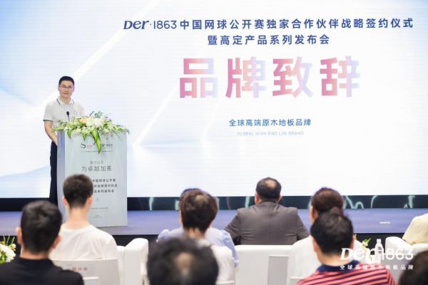 德尔董事、执行总裁,兼地材产业总裁姚红鹏先生代表德尔发表致辞,他表示,德尔致力于为消费者提供绿色环保、科技领先的家居产品和前沿家居体验,多年来凭借卓越的运营管理及产品和服务质量,成为国内领先的专业木地板品牌服务商和环保地板倡导者。Der·1863作为消费升级、消费分级时代背景下的必然产物,是德尔探索高端木地板品类的一条正确的道路。本次与中网赛事的合作,Der·1863以其倡导高品质生活方式的理念与网球运动优雅严谨、追求卓越的精神不谋而合,期待通过战略合作,在未来持续共创赛事精彩、践行高雅生活方式。