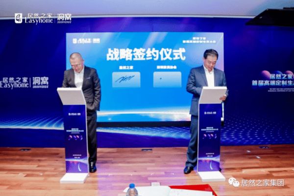 居然之家董事长兼CEO汪林朋还与深圳市家具行业协会主席侯克鹏签订战略合作协议,居然之家将全力支持深圳家居设计周暨深圳国际家具展的发展,共同助力高定整装产业发展。