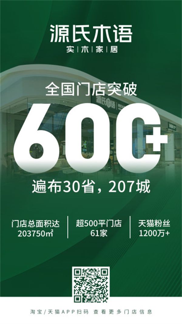 目前,源氏木语的天猫粉丝数量已经超过1200万,全国门店数量已经超过600家,覆盖全国30个省、207个城市。不仅在一二线城市一城多店,源氏木语还在拓展下沉市场,在三四线城市和百强县也有开设门店。