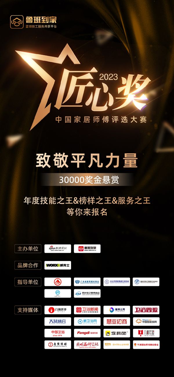 鲁班到家联合新浪家居共同主办的“匠心奖·2023中国家居师傅评选大赛” ,于2023年9月15日正式开启网络报名通道。本届大赛玩法升级,设立了“技能类”、“榜样类”和“服务类”奖项,为了表彰技艺精湛、富有匠心的家居蓝领师傅,进一步树立榜样标杆,使“匠心精神”更加深入人心。