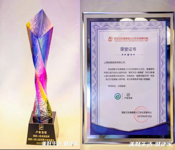 近日,为进一步推动健康中国行动落地、全面推进美丽中国建设,由国家卫生健康委人口文化中心主办的美好生活·健康家--2023健康人居公益发展大会在北京隆重举行。作为有20余年深厚积累的欧洲原装进口地板品牌,卢森地板凭借高品质的环保产品及对“健康中国2030”建设的积极推动,荣获国家卫生健康委人口文化中心颁发的“健康人居卓越品牌”。