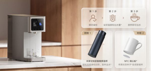 智能识别水杯身份也是这几代米家净饮机搭载的新功能,无论是使用米家附赠的智能保温杯,还是选择使用NFC智能标签标记自己独一i无二的水杯,都能让它牢记你日常所需的温度及