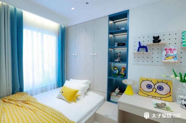 儿童房做榻榻米设计,用定制解决不规则户型,充分利用每一寸空间,而且满足孩子休息,存衣和学习活动等需求,让整个空间更协调。