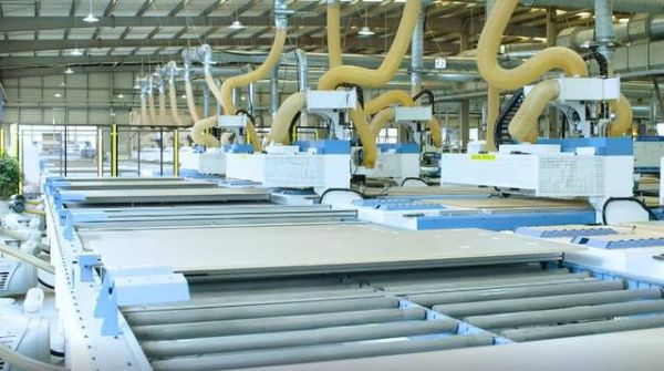 双虎还打造了智能智造生产基地,引进了全套意大利、德国豪迈先进生产设备,全面发力生产智能化、自动化和全流程协同化,从设计到选材、生产、仓储、物流、安装、售后,全流程实现家居生产的“数智时代”。