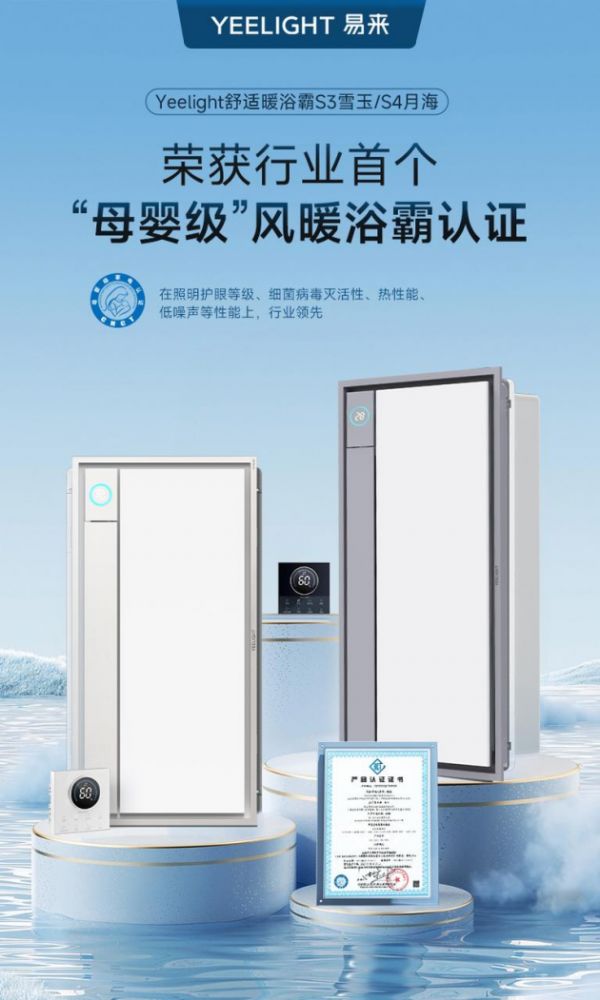 一般来说,母婴群体在选择家电时有较高的要求,但在风暖浴霸领域,一直未有被专业认可的母婴级产品。在洞察到母婴群体特殊需求后,易来推出母婴级风暖浴霸,为千万母婴家庭提供健康解决方案。此次获得“趋势新品奖”的Yeelight舒适暖浴霸S3也是行业首个获得中国家用电器研究院颁发的“母婴级”风暖浴霸认证的产品。