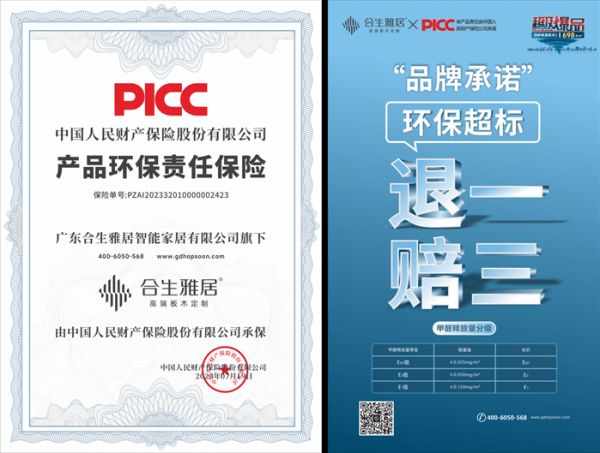 一直以来,合生雅居在多层实木这一单品类细分领域精耕细作,做到了行业多层实木单品类第一,事实也如此,合生雅居整年度的销售额中多层实木销量占据整个销售额的45%,合生雅居也是行业中较早做多层实木的品牌之一,知道行情的可能都知道,多层板生产工艺比刨花板更复杂,不是单一的自动化程序就能搞定,需要的人工成品更高,在性能上多层板稳定性更强,不容易开裂不易变形,特别是南方城市,沿海地区江河流域,一般湿度都比较高,尤其在回南天的时候,湿度会更大,在防潮性能方面,多层板必定更胜一筹!而此次合生雅居不仅将多层实木的价格调整到698元/m²,还将多层实木从EO级升级到了ENF级,并且打出的广告是由中国人保PICC承保,支持甲醛超标退一赔三,那么在消费同样的情况下可以选择更高配置的多层板,家居环保也有了更高的保证!可以多层何必刨花呢?