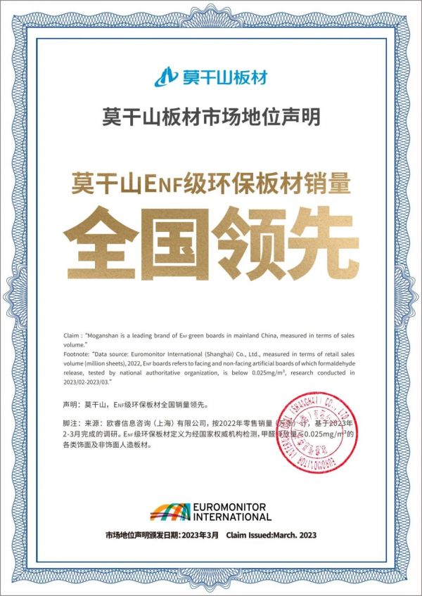 莫干山豆茵板从问世至今,持续热销,离不开在其背后支撑着的ENF级环保品质。未来,莫干山豆茵板将继续秉承环保初心,提高综合品质,以过硬实力惠及千家万户。