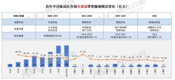 奥维云网数据显示,2020年、2021年和2022年,全国集成灶市场零售额分别为182.2亿元、256亿元和259亿元,年复合增长率回落至个位数。