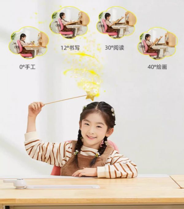光明园迪学习桌还有四大学习模式,满足孩子手工、书写、阅读、绘画等不同需求,让孩子从小养成在专属学习桌上学习习惯。同时,桌子和椅子的高度可以随着孩子的成长进行调整,52-76厘米高度可调,让孩子从小学一直用到大学都没有问题。