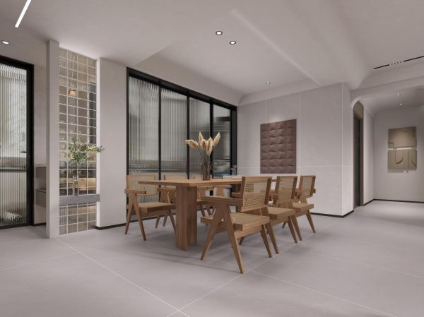 对于小户型空间来说,纯色或素色的瓷砖更符合这类空间调性。素色砖色彩、纹理更简洁、统一,让视觉得以延伸,营造出“大视野”空间。