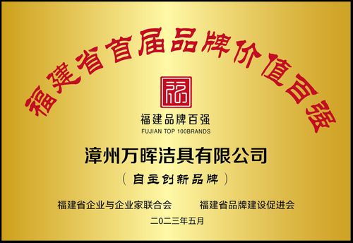 2023年5月7日,福建首届品牌价值百强榜单发布暨“一带一路”八闽知名品牌发展与合作大会在宁德举行,会上发布了“福建首届品牌价值百强榜单”,航标卫浴荣获福建首届品牌价值百强称号