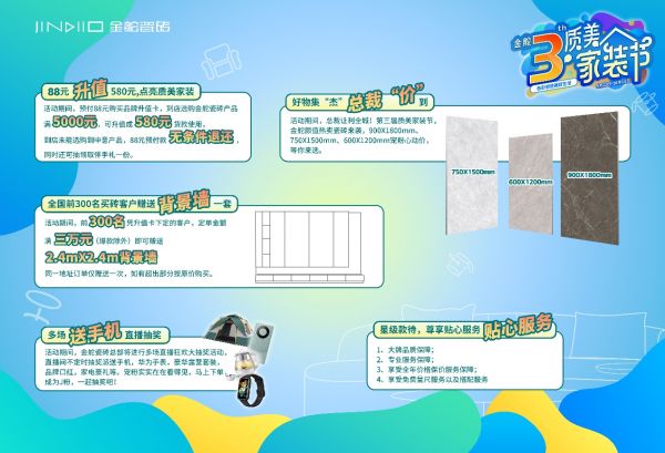 为了让全国消费者更好地了解和体验金舵瓷砖的优质产品,本次“质美家装节”活动期间,金舵瓷砖将通过线上线下相结合的方式,为消费者提供一系列丰富多彩的活动与高性价比的优质产品,以满足当下各消费阶层对家居瓷砖产品的功能性、美观性与实用性需求。