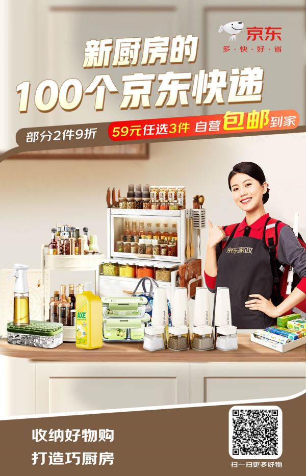 “厨房清洁收纳季——新厨房的100个京东快递”活动由京东厨具联合家清、家政共同开启,丰富品类充分满足消费者多场景下的厨房清洁收纳需求,让消费者可以一站式省心焕新厨房。活动正在火热进行中,赶紧登录京东APP搜索“厨房收纳”“100个快递”来会场选购吧!