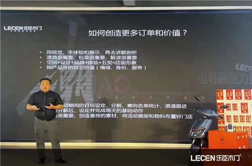 乐臣运营总监冯总讲解了此次全国联动的目的和意义。再次解读了乐臣的【“潮牌”定义、“原创”魅力】,非常精炼地提出【用6句话卖好乐臣“潮牌”木门】,并且指出在内卷时代,一流的产品+一流的形象+终端的努力,厂商同心才能成就当地头部经销商。
