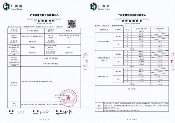 PE纯净生态模块过敏原去除性能检测证书