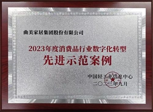 曲美家居荣获“2023年度消费品行业数字化转型先进示范案例”!