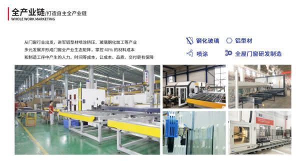 富轩全屋门窗对此早有布局,在佛山、肇庆、江西拥有六大4.0智能生产基地,占地累计56万平米,其中广东肇庆大旺和江西南昌生产基地皆属于自主买地建设,为生产制造大大节省租金成本,并投入亿级巨资引进数十条智能生产线,将信息技术充分应用到生产领域,保证对广大业主客户快准稳好的交付。 此外,出于长远发展考虑,富轩于行业率先完善了铝型材、喷涂、钢化玻璃、全屋门窗研发制造等一站式自主产业链。凭借强有力的全产业链后盾和4.0生产智造优势,富轩掌控了40%的材料成本,和制造工序中产生的人力、时间等成本,让产品更充分地让利到终端门店同时,保证对顾客快、准、稳的交付。