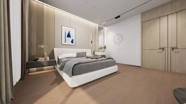 深浅交织的木地板与床的朝向垂直