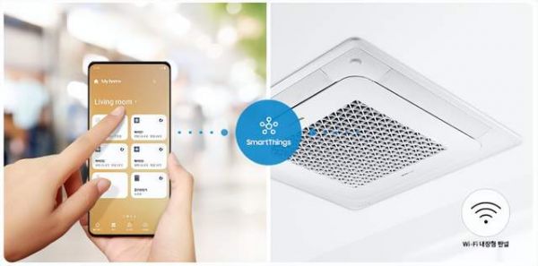 搭配气液增焓技术可使系统在严寒气候下制热能量提升。三星侧出风变频多联机属于空气源热泵式的冷媒多联机系统,室内外机之间通过冷媒管连接,每个房间单独送风,避免空气交叉感染。