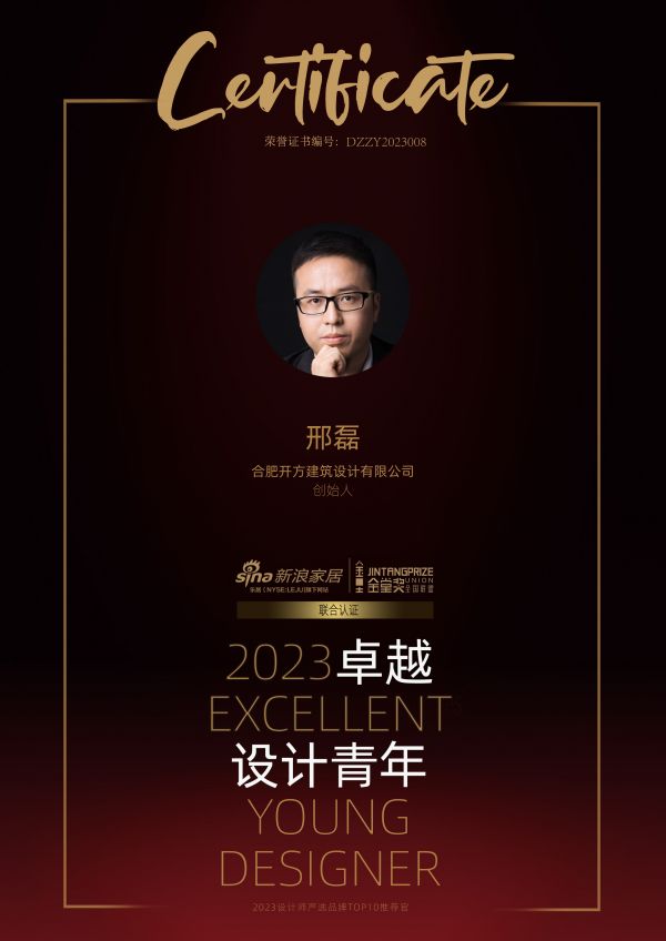 由新浪家居和金堂奖全国联盟发起的“2023卓越设计青年”,是设计业界最具传播价值的年度先锋荣誉,由新浪家居与金堂奖联名认证。本期荣膺“2023卓越设计青年”称号的是合肥开方建筑设计有限公司 创始人——邢磊。