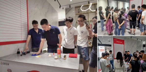 在金牌亚洲终端门店,我们经常能看到这样的画面:消费者围在一起,认真地观看店员做实验。店员轮流拿起笔、食用油、酱油、咖啡、可乐、陈醋等,在金丝绒瓷砖上又涂又画,再拿起电钻、尖刀、钢丝球、喷火枪等,对金丝绒瓷砖施加各种“酷刑”。当大家以为这块瓷砖将变得面目全非的时候,店员拿起抹布轻轻一擦,金丝绒瓷砖竟然完好如初,没能留下任何污渍痕迹。而这就是金丝绒瓷砖能够成为市场新宠的主要原因——超抗污!