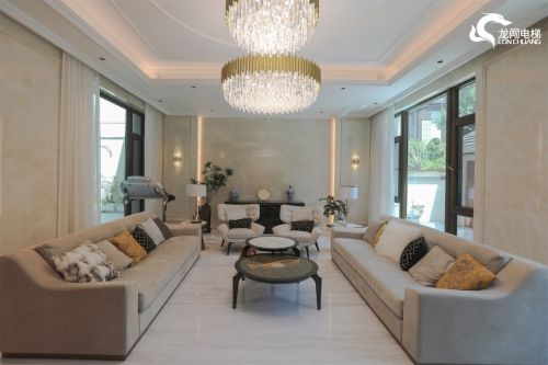 当电梯缓缓上升或下降时,透过玻璃门,可以看到别墅内部的每一个角落,仿佛是在欣赏一部流动的画卷。
