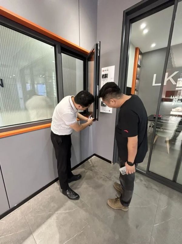 在胡总的陪同下,百佳联盟一行对乐奇门窗展厅进行了参观。期间,石钰副秘书长一行目睹了行业前沿的展厅设计和高质量门窗定制产品设计,了解了乐奇门窗的品牌理念、发展历程、服务标准以及研发成果等;对乐奇门窗的产品体系和研发实力给予充分的认可和高度评价。