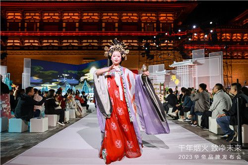 班固在《西都赋》序言里说“愿宾摅怀旧之蓄念,发思古之幽情”。此次华帝在应天门举行发布会,这样的场景下与会人员自然不由自主地思古幽情起来。而在发布会开始之后,富含传统文化色彩的模特走秀,与恢宏的应天门相得益彰,通过沉浸交互,将传统文化的演进表现出来,打造出了一个沉浸式空间,为观看者带来震撼感官的梦幻体验。千年韵味尽在其中,能使人们在心理感情中获得一种无可言状的美感,一种心理上的慰藉和满足,一种文化上的浇灌与滋润。