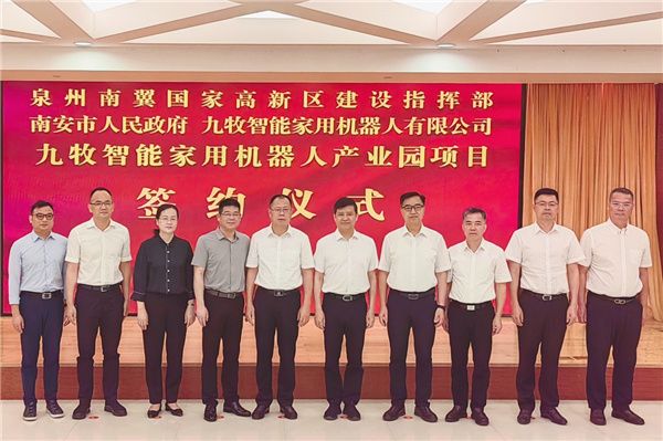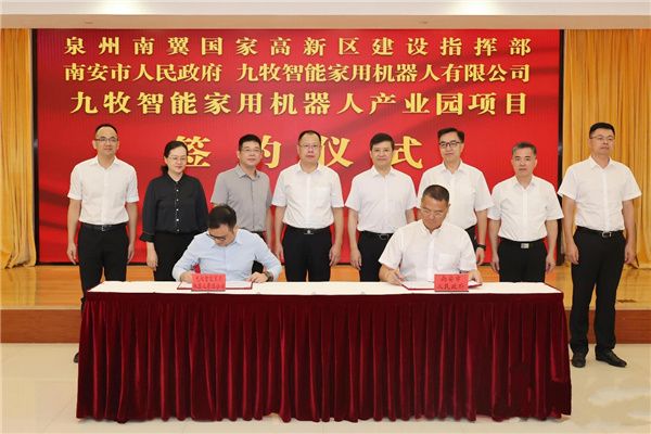 9月28日,九牧智能家用机器人产业园项目正式签约落地泉州南翼国家高新区。泉州市委书记张毅恭,市人大常委会主任、南翼国家高新区建设指挥部指挥长李建辉,市委常委、秘书长周小华,副市长汪志红,九牧集团党委书记、董事长林孝发,副董事长林四南,执行总裁林友色,运营总裁林晓伟等出席此次签约活动。