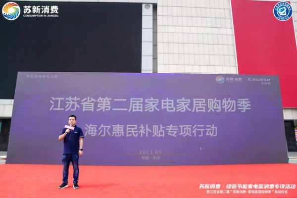 2023年是国家商务部确立的”消费提振年”,是中国经济的复苏之年,为深入贯彻国家发改委恢复和扩大消费二十条措施,按照省委、省政府的总体安排,江苏省商务厅、省发改委和省财政厅组把本次专项活动落到织开展了“苏新消费・绿色节能家电专项活动“,9月28日,“苏新消费・绿色节能家电专项补贴”系列活动发布仪式在建邺区万达广场隆重举行,此次活动由江苏省商务厅、江苏省发改委 、江苏省财政厅指导,江苏省家用电器协会主办,海尔智家、京东五星电器、江苏银联、苏宁易购、文峰电器等重点家电、家装企业联合参与,在秋季家装旺季为消费者提供全场景家电家装产品优惠,刺激消费市场。