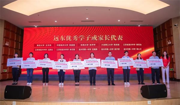 仪式现场宣布了2019-2023年远东教育奖励基金获奖名单,并向宜兴市录取清华北大、“双一流”大学及省市三好优干、远东优秀学子或家长代表现场发放奖励基金。