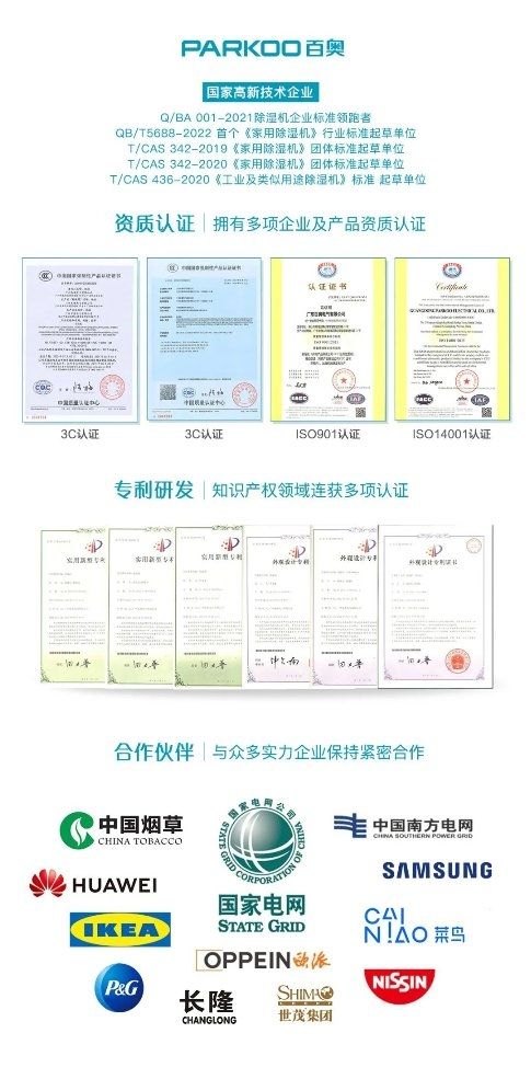 广东百奥电器作为国家高新技术企业、广东省制造业企业500强。围绕“成为全球领先的环境温湿度产品和服务供应商”愿景,引领行业健康发展,百奥除湿机是中国除湿机企业标准领跑者,首个《家用除湿机》行业标准主起草单位之一,连续两年是《家用除湿机》团体标准重要起草单位之一,同时是《工业及类似用途除湿机》第二起草单位。并成功服务南方电网、湖南省博物馆、腾讯、华为、海尔、三星、比亚迪、宝洁、长隆、中国烟草、华南理工大学等10万+客户案例。
