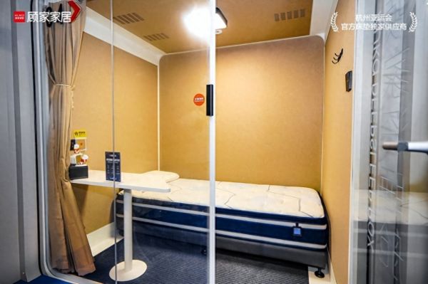 杭州亚运会主媒体中心作为重要的非竞赛场馆,是媒体记者的大本营和信息传播的总枢纽。亚运期间,来自海内外的媒体工作者们聚集在这里进行高强度的新闻报道工作。为此,顾家家居在主媒体中心特别打造了一个深睡空间,建立了8个深睡舱,为媒体工作者提供最长4小时(白天)/8小时(夜间)的深睡休憩服务,媒体记者可以在这里休息、小憩和过夜,在紧张的工作中快速恢复体能。这也是亚运会历史上首次由官方设置的睡眠休息区域,一经亮相便受到了各国媒体记者的集体点赞。