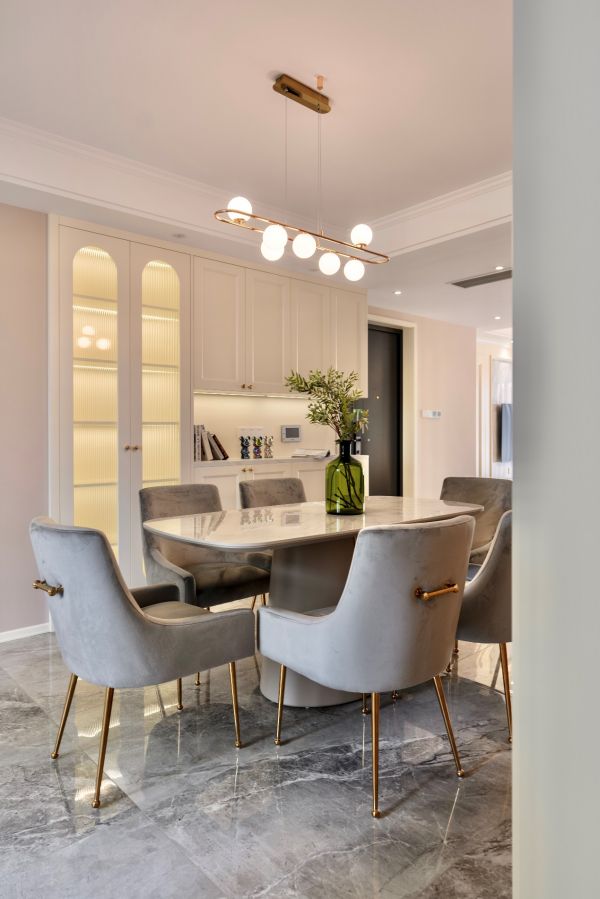 去掉繁复的吊顶,强调空间的唯美,配合极具设计感的灯具,打造出独特的浪漫。悠闲的周末给自己热一壶咖啡,平淡的日子里享受生活,给自己身心放个假。