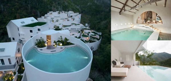 那云·天空之城拥有国内首个世界的崖间温泉泡池。在温泉中心里,感受天然的“软体黄金“偏硅酸温泉,采用退台式设计的温泉中心充满了设计美学,不仅外观非常优美,内部也别有洞天,浪漫的人工降雪设施,让游客随时都可以享受浪漫浴雪泡温泉的极致享受。