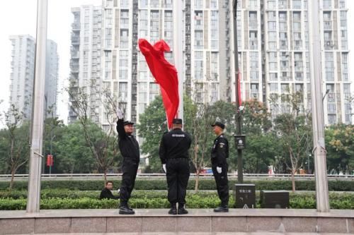 礼赞祖国,盛世华诞!金盛集团江北片区举行庆国庆升旗仪式