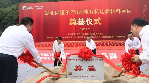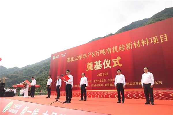 2023年9月28日上午9点18分,湖北以恒年产8万吨有机硅新材料项目开工仪式,在湖北兴山化工园大礼溪片区湖北以恒厂区内如期举行。前往现场参加仪式的有兴山县委领导、县直部门、乡镇、企事业单位、县开发区管委会、县招商局干部职工、昭君镇人民政府干部职工及群众代表等160余人。在社会各界的见证下,湖北以恒开工奠基仪式于当日圆满成功!