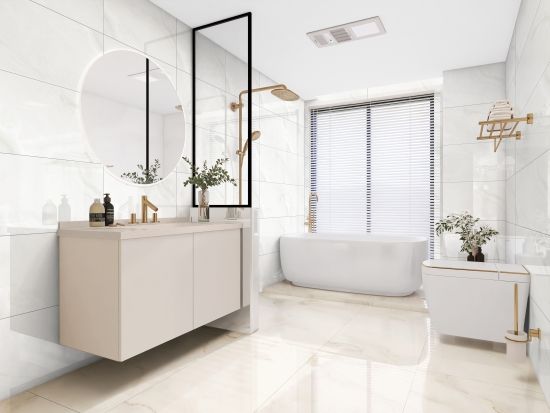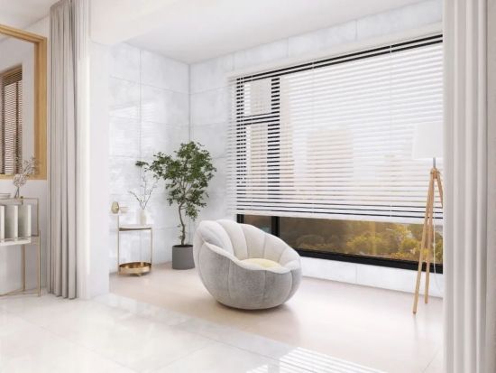 砖面温润透亮,洁白版面蔓延着玉石细腻而随性的自然纹理,带来雅致、安宁的空间氛围,不经意间彰显出空间的艺术格调。