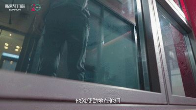 还没等郭先生和太太回过神来,新豪轩的工作人员打开一个窗户,整个人挂在了开启扇上,直接“身体力行”展示新豪轩窗扇的承重能力。