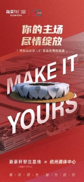 拼搏,不止于赛场;荣耀,属于每个坚持的时刻。圆梦亚运,让新豪轩门窗带着这份中国力量与拼搏精神,续写中国门窗新篇章。