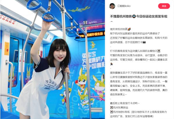 可爱的形象和活泼的配色形成强大的视觉冲击力,让人眼前一亮,增加旅途中的乐趣。随处可见的兔IP形象吸引了众多博主前来合影打卡,同时兔宝宝还在多个线上平台设有抽奖活动。从线下到线上,兔宝宝围绕着公共出行全过程打造了立体的传播网络,营造了浓厚的亚运氛围,也为号召绿色低碳、健康出行贡献了一份力量。